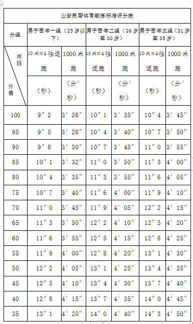 測試標準參照《公安(an)機關錄用(yong)人民警察體能測評項目和標準》執行。男子組(zu)
