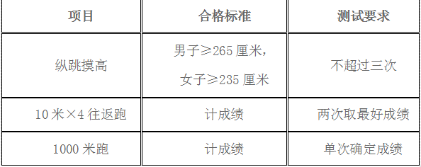 測試標(biao)準(zhun)參照《公安機關錄用人(ren)民警察體能測評項(xiang)目和標(biao)準(zhun)》執(zhi)行。